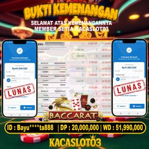 Selamat Kepada ID : Bayu****ta888 Atas Withdraw Rp. 51,990,000 Juta Hari ini. Ditunggu Withdraw Selanjutnya dan ajak juga teman temannya bergabung di Kacaslot03