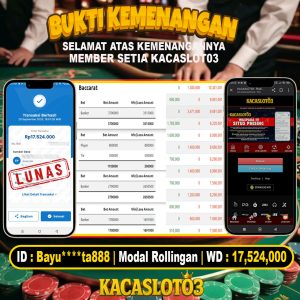 Selamat Kepada ID : Bayu****ta888 Atas Withdraw Rp. 17,524,000 Juta Hari ini. Ditunggu Withdraw Selanjutnya dan ajak juga teman temannya bergabung di Kacaslot03