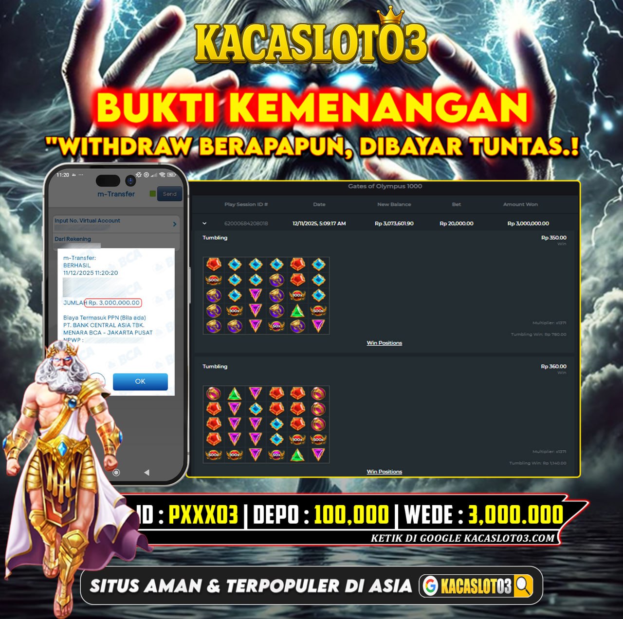 Selamat Kepada ID : wa***n2 Atas Withdraw Rp. 1,200,000 Juta Hari ini. Ditunggu Withdraw Selanjutnya dan ajak juga teman temannya bergabung di Kacaslot03
