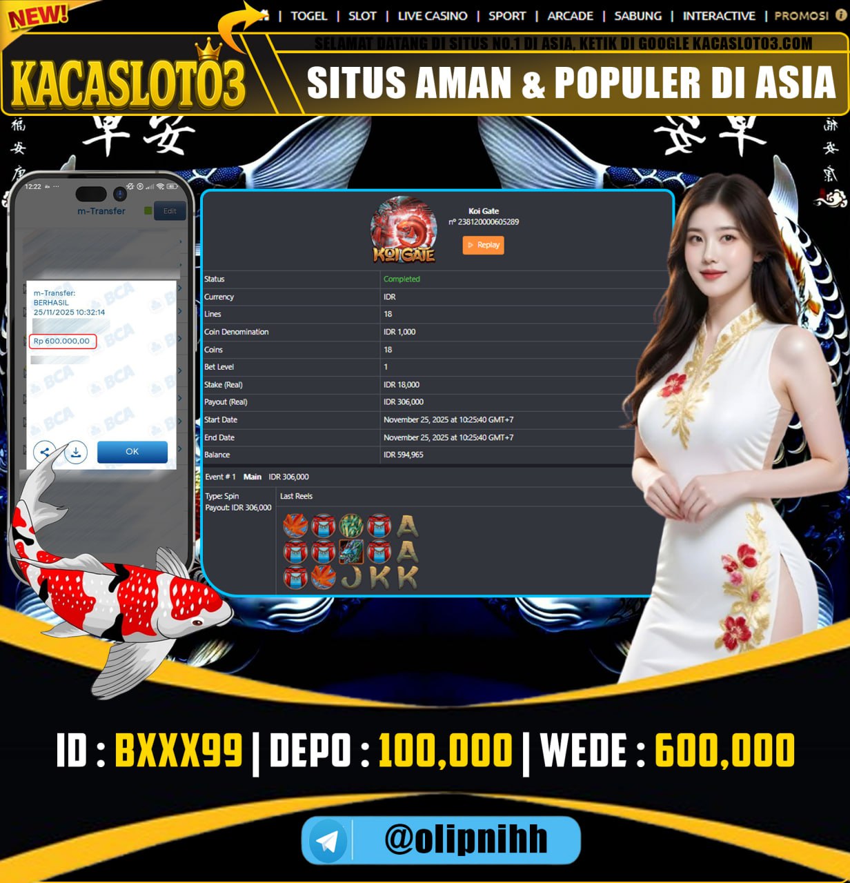 Selamat Kepada ID : Ga***45 Atas Withdraw Rp. 2,000.000 Juta Hari ini. Ditunggu Withdraw Selanjutnya dan ajak juga teman temannya bergabung di Kacaslot03