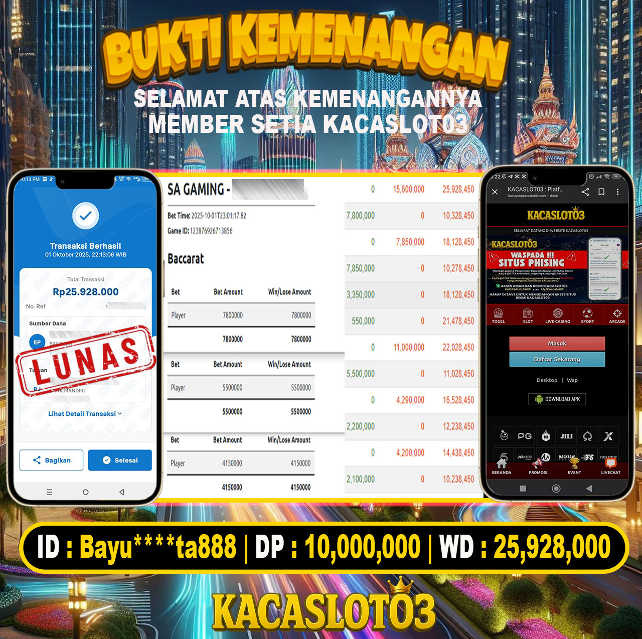 Salah satu keunggulan dari Kacaslot03 adalah keamanan dan kenyamanan dalam bertransaksi. Dengan menggunakan teknologi enkripsi canggih, pemain dapat merasa aman melakukan transaksi keuangan di situs ini. Platform ini juga memberikan dukungan pelanggan 24 jam, yang semakin meningkatkan pengalaman bermain bagi pengguna