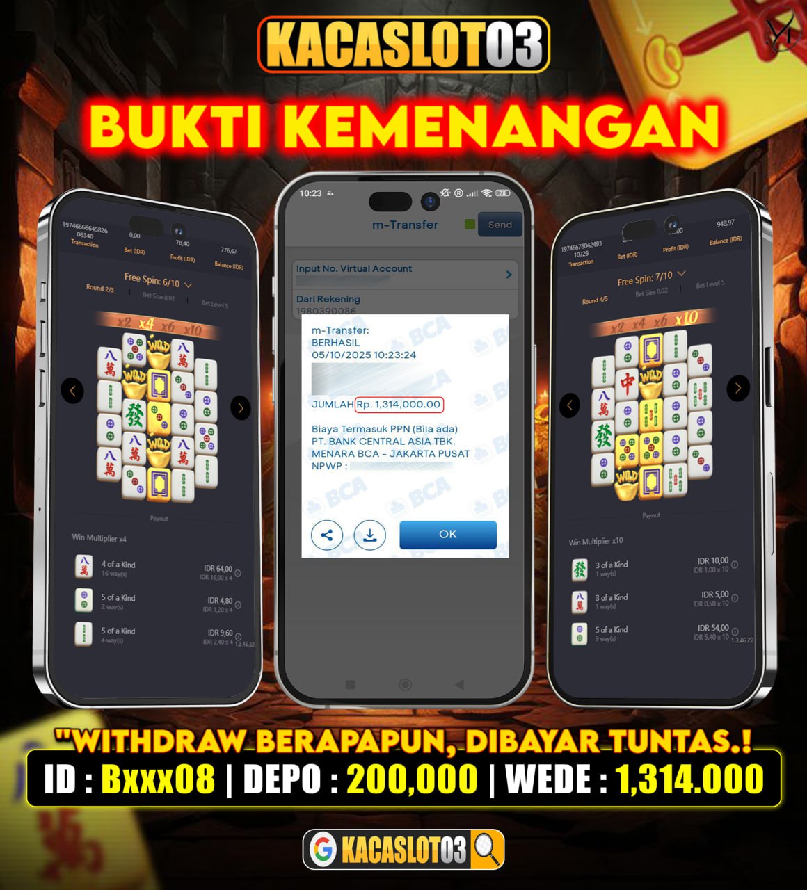 Selamat Kepada ID : ba***ng Atas Withdraw Rp. 3.600.000 Juta Hari ini. Ditunggu Withdraw Selanjutnya dan ajak juga teman temannya bergabung di Kacaslot03