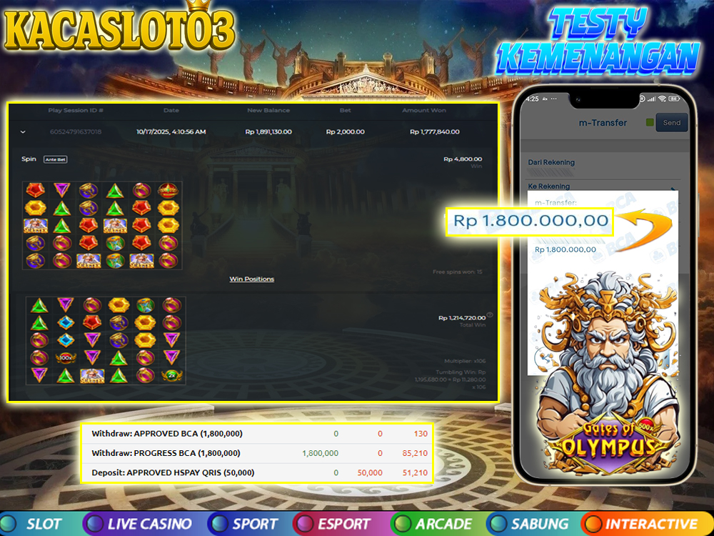 KACASLOT03 Bukti Kemenangan GATES OF OLYMPUS 1000 – PRAGMATIC PLAY