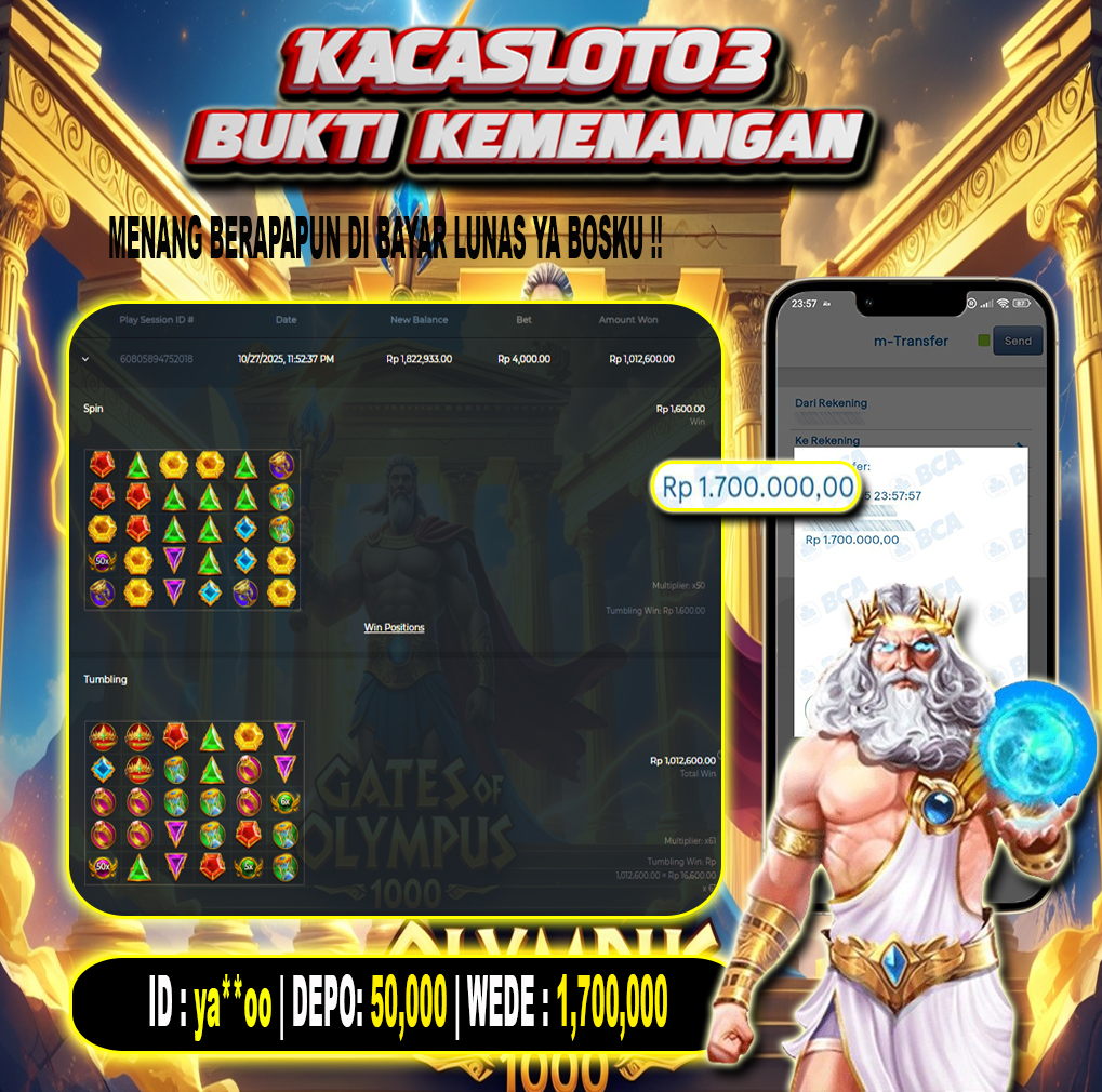 Selamat Kepada ID : ya**oo Atas Withdraw Rp. 1,700,000 Juta Hari ini. Ditunggu Withdraw Selanjutnya dan ajak juga teman temannya bergabung di Kacaslot03