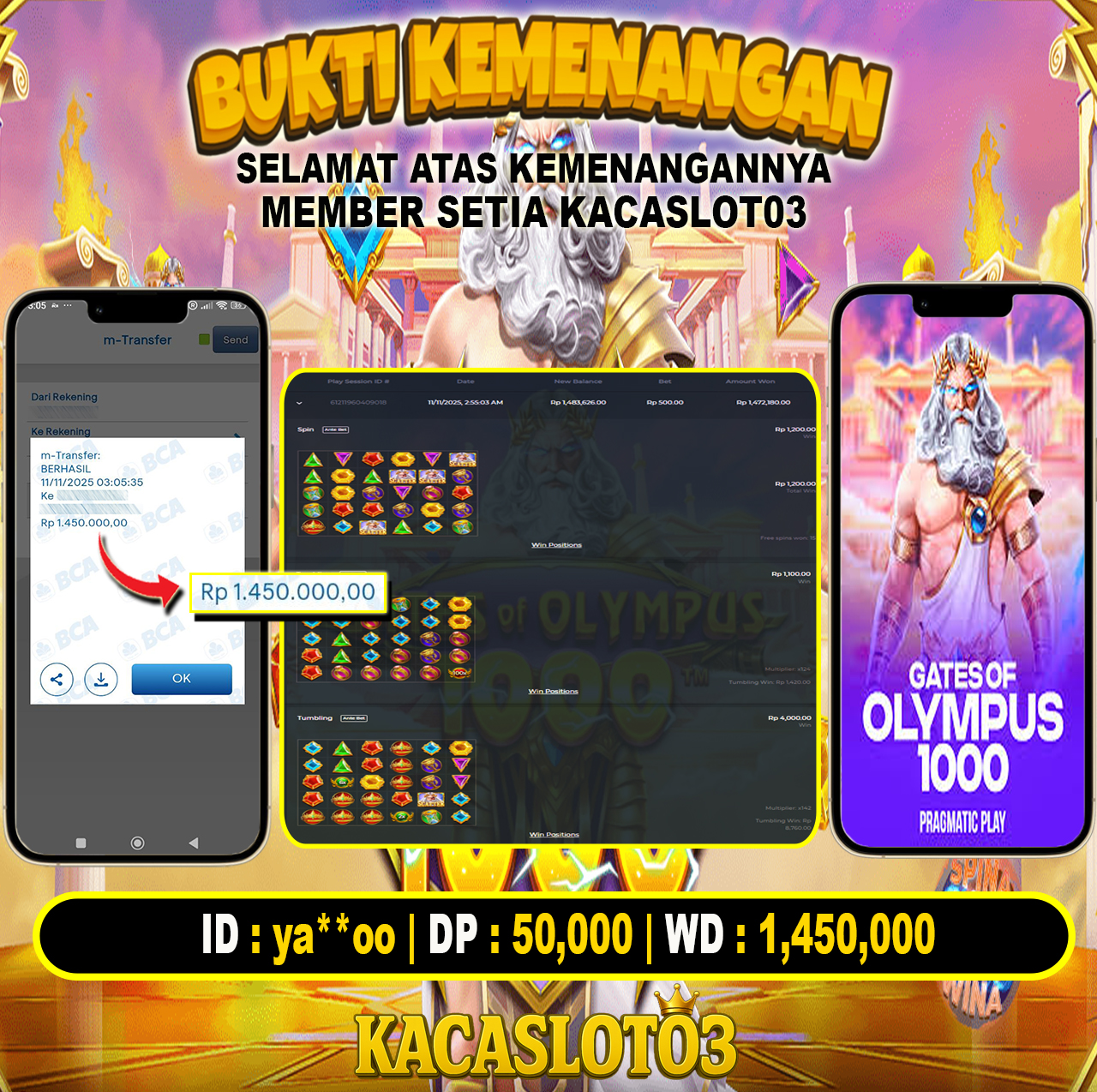 Selamat Kepada ID : ya**oo Atas Withdraw Rp. 1,450,000 Juta Hari ini. Ditunggu Withdraw Selanjutnya dan ajak juga teman temannya bergabung di Kacaslot03