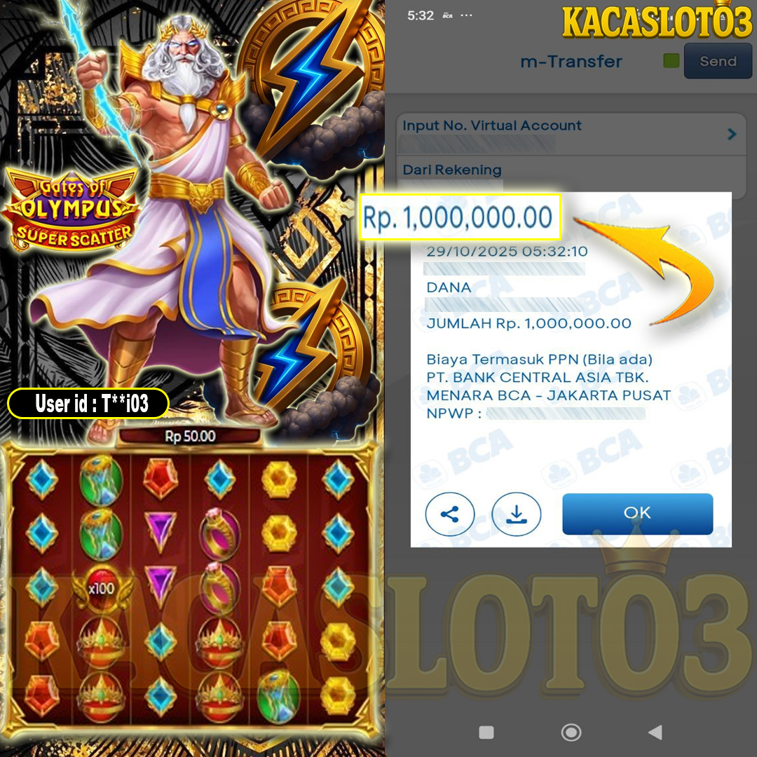 Selamat Kepada ID : ta**03 Atas Withdraw Rp. 1,.000,000 Juta Hari ini. Ditunggu Withdraw Selanjutnya dan ajak juga teman temannya bergabung di Kacaslot03