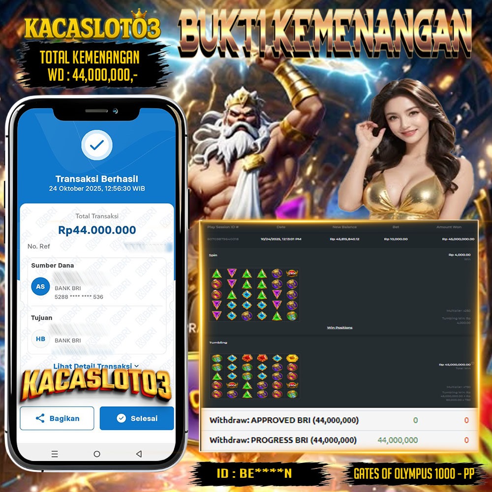 Selamat Kepada ID : Beb*******un Atas Withdraw Rp. 44,000,000 Juta Hari ini. Ditunggu Withdraw Selanjutnya dan ajak juga teman temannya bergabung di Kacaslot03
