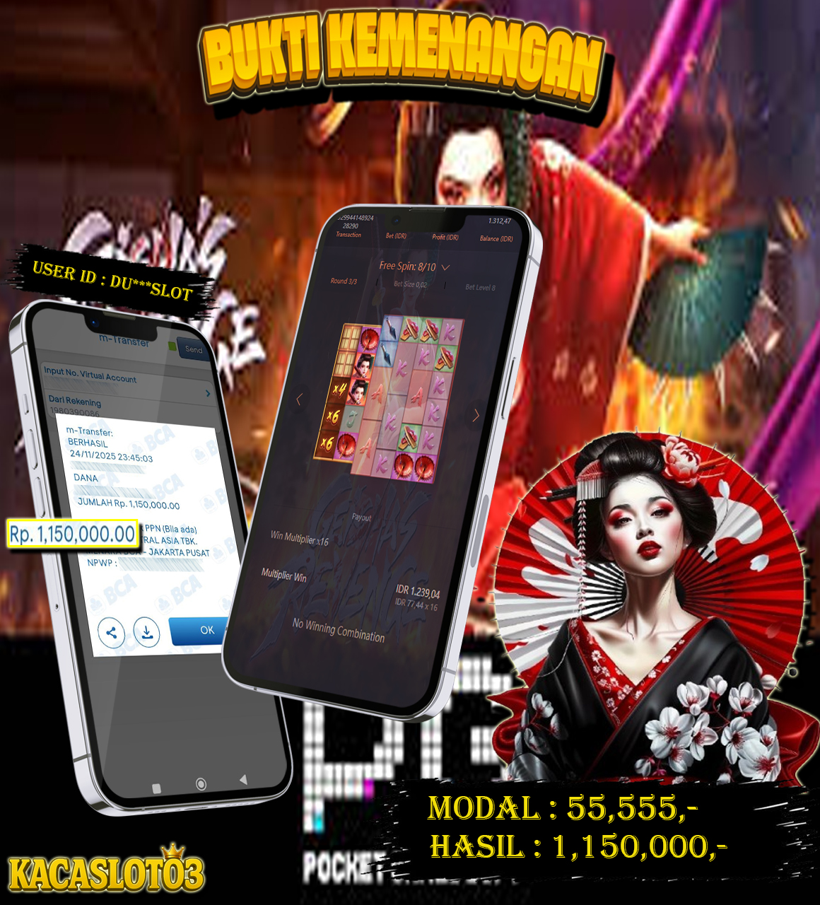 KACASLOT03 Bukti Kemenangan GEISHA’S REVENGE – PG SOFT