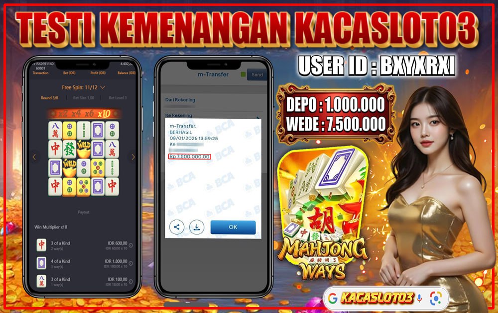 Selamat Kepada ID : Fe***iu Atas Withdraw Rp. 3,030,000 Juta Hari ini. Ditunggu Withdraw Selanjutnya dan ajak juga teman temannya bergabung di Kacaslot03