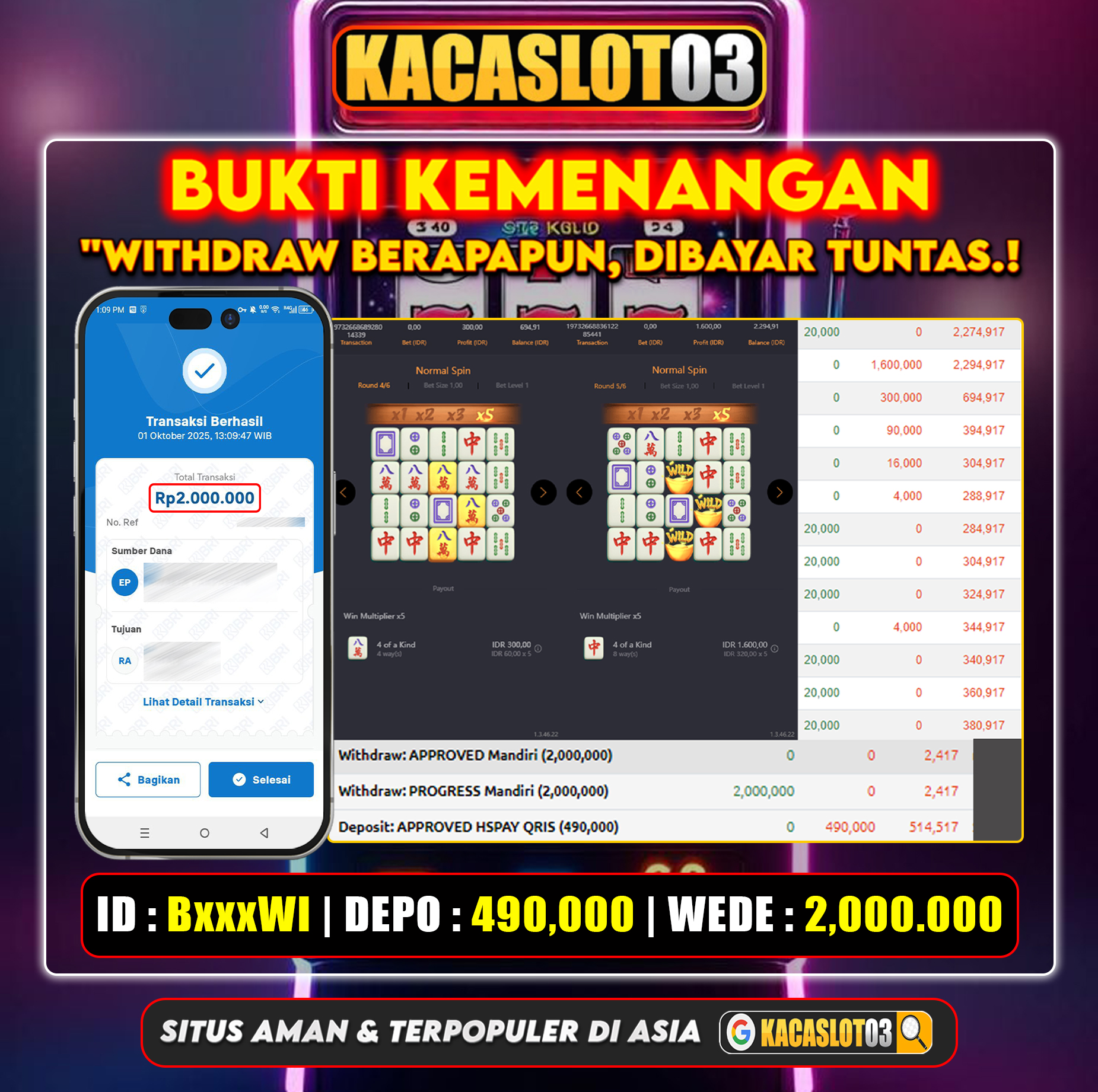 Salah satu keunggulan dari Kacaslot03 adalah keamanan dan kenyamanan dalam bertransaksi. Dengan menggunakan teknologi enkripsi canggih, pemain dapat merasa aman melakukan transaksi keuangan di situs ini. Platform ini juga memberikan dukungan pelanggan 24 jam, yang semakin meningkatkan pengalaman bermain bagi pengguna