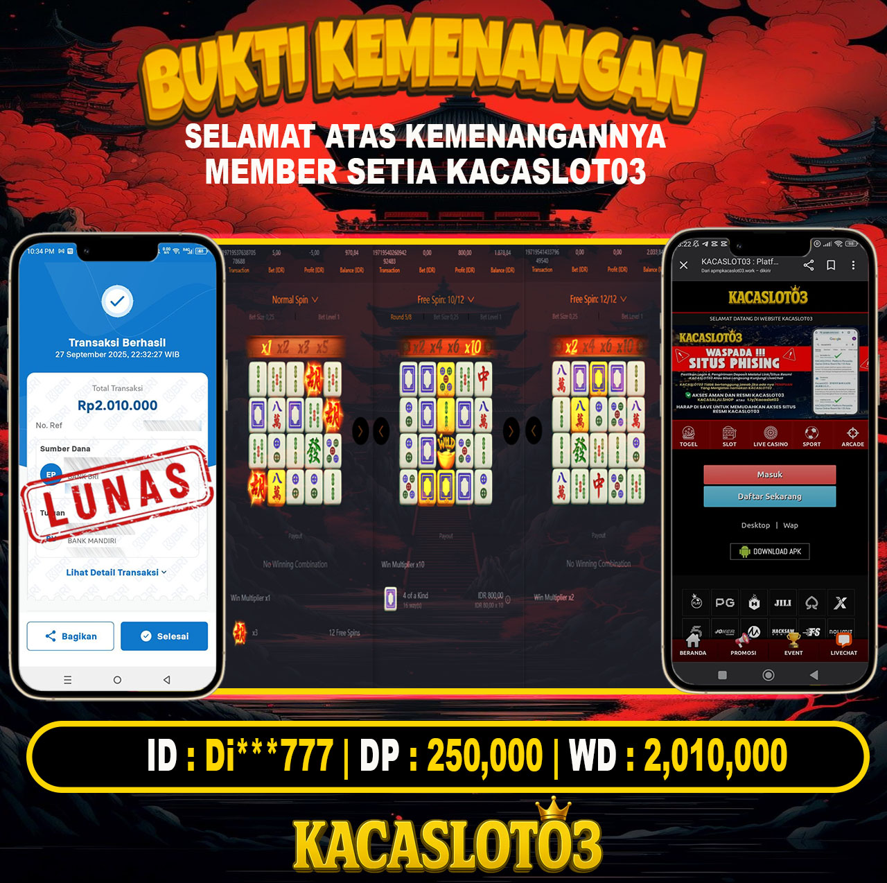 Di Kacaslot03, pemain dapat menikmati beragam jenis permainan slot dari berbagai penyedia perangkat lunak, yang memungkinkan pemain untuk meraih kemenangan besar. Slot yang ditawarkan memiliki tingkat pengembalian yang kompetitif (RTP tinggi), sehingga meningkatkan peluang pemain untuk menang. Selain itu, platform ini sering mengadakan berbagai promosi dan bonus yang dapat meningkatkan keuntungan, termasuk bonus selamat datang dan putaran gratis.