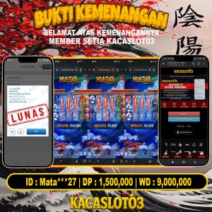 Selamat Kepada ID : Mata***27 Atas Withdraw Rp. 9,000,000 Juta Hari ini. Ditunggu Withdraw Selanjutnya dan ajak juga teman temannya bergabung di Kacaslot03