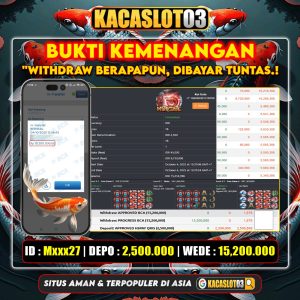 Selamat Kepada ID : Mata***27 Atas Withdraw Rp. 15,200,000 Juta Hari ini. Ditunggu Withdraw Selanjutnya dan ajak juga teman temannya bergabung di Kacaslot03