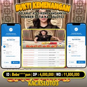 Selamat Kepada ID : Bebe****pun Atas Withdraw Rp. 11,800,000 Juta Hari ini. Ditunggu Withdraw Selanjutnya dan ajak juga teman temannya bergabung di Kacaslot03