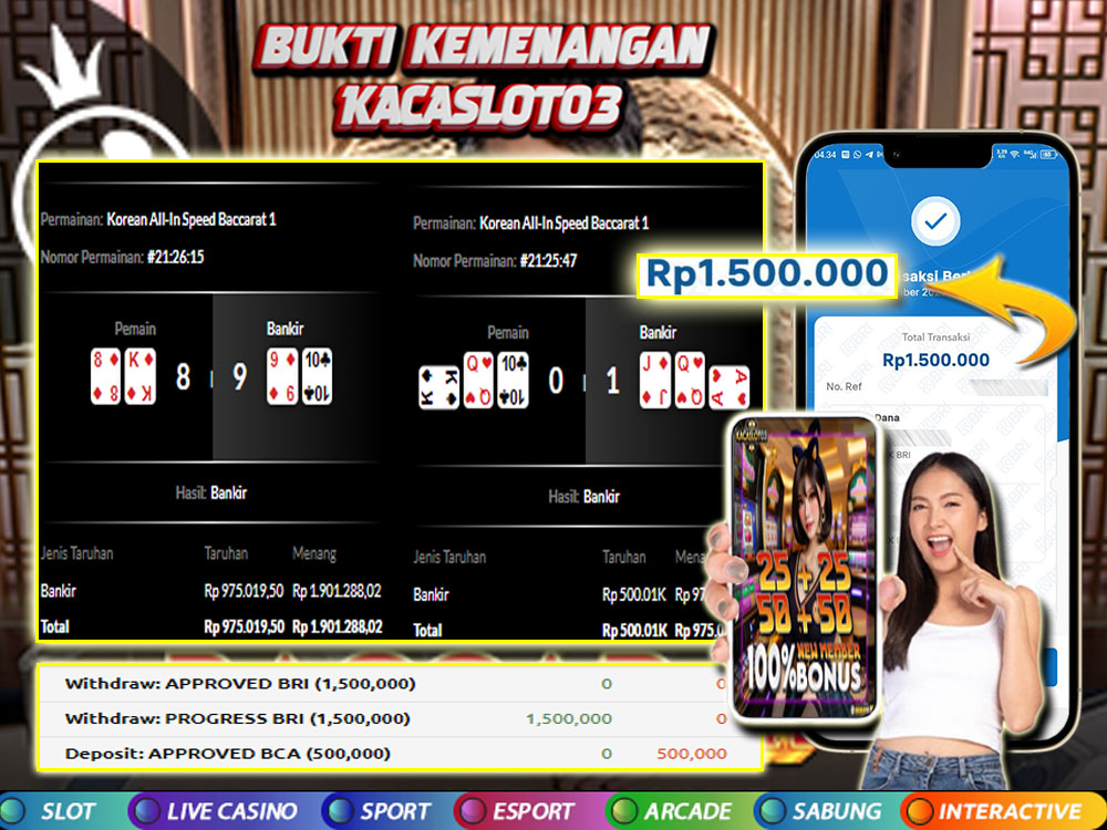 Selamat Kepada ID : An***a1 Atas Withdraw Rp. 1,500,000 Juta Hari ini. Ditunggu Withdraw Selanjutnya dan ajak juga teman temannya bergabung di Kacaslot03