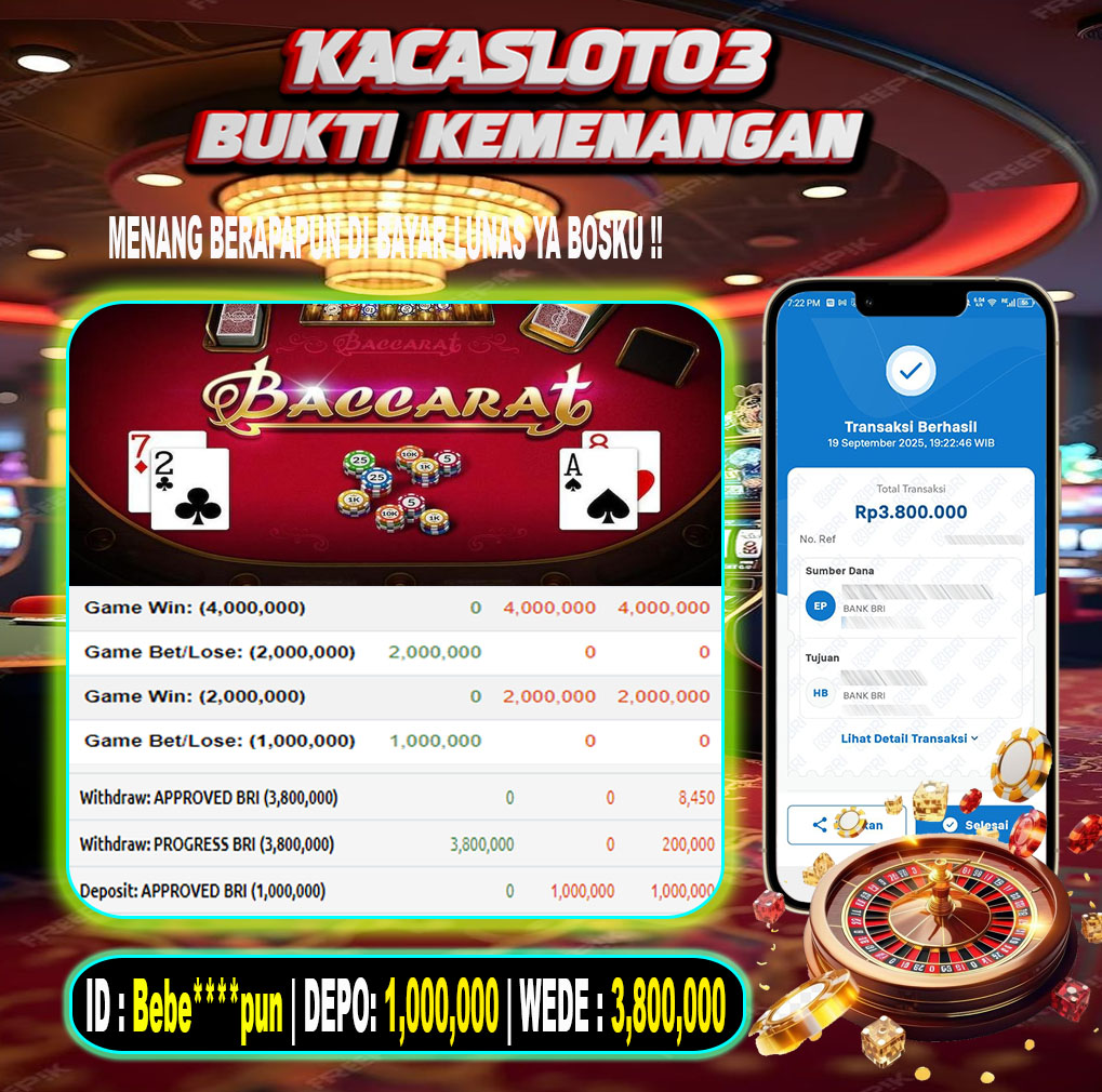 Selamat Kepada ID : Bebe****pun Atas Withdraw Rp. 3,800,000 Juta Hari ini. Ditunggu Withdraw Selanjutnya dan ajak juga teman temannya bergabung di Kacaslot03