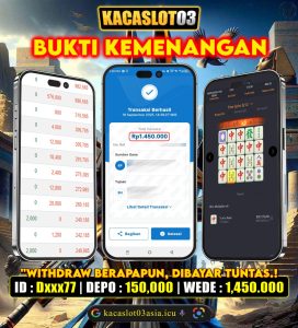Selamat Kepada ID : Di****77 Atas Withdraw Rp. 1,450.000 Juta Hari ini. Ditunggu Withdraw Selanjutnya dan ajak juga teman temannya bergabung di Kacaslot03