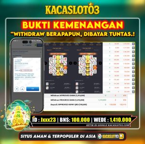 Selamat Kepada ID : ja*****23 Atas Withdraw Rp. 1,410.000 Juta Hari ini. Ditunggu Withdraw Selanjutnya dan ajak juga teman temannya bergabung di Kacaslot03
