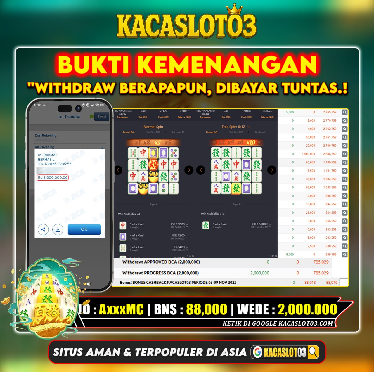 KACASLOT03 Bukti Kemenangan MAHJONG WAYS