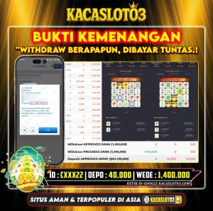 Selamat Kepada ID : Ce***22 Atas Withdraw Rp. 1,400.000  Juta Hari ini. Ditunggu Withdraw Selanjutnya dan ajak juga teman temannya bergabung di Kacaslot03