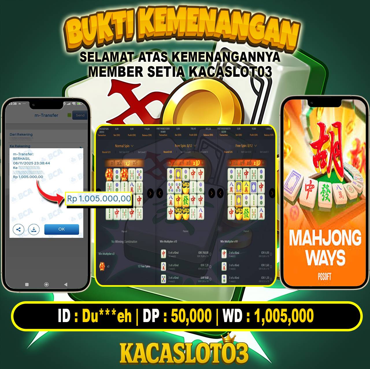 Selamat Kepada ID : Du***eh Atas Withdraw Rp. 1,005,000 Juta Hari ini. Ditunggu Withdraw Selanjutnya dan ajak juga teman temannya bergabung di Kacaslot03
