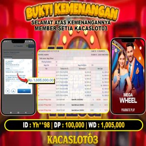Selamat Kepada ID : Yh**98 Atas Withdraw Rp. 1,005,000 Juta Hari ini. Ditunggu Withdraw Selanjutnya dan ajak juga teman temannya bergabung di Kacaslot03