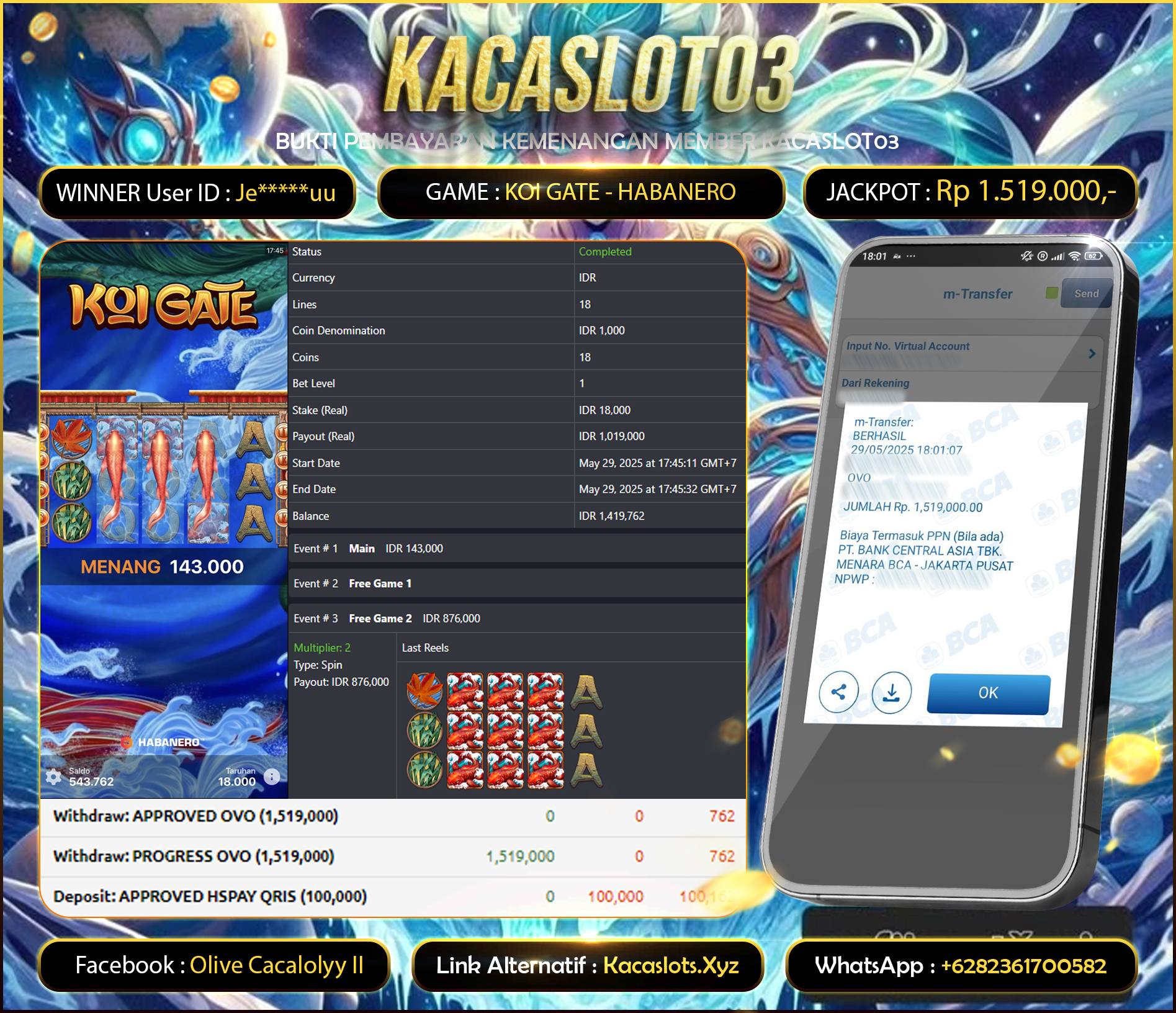 Selamat Kepada ID : Ky*****T Atas Withdraw Rp. 1.050.000 Juta Hari ini. Ditunggu Withdraw Selanjutnya dan ajak juga teman temannya bergabung di Kacaslot03