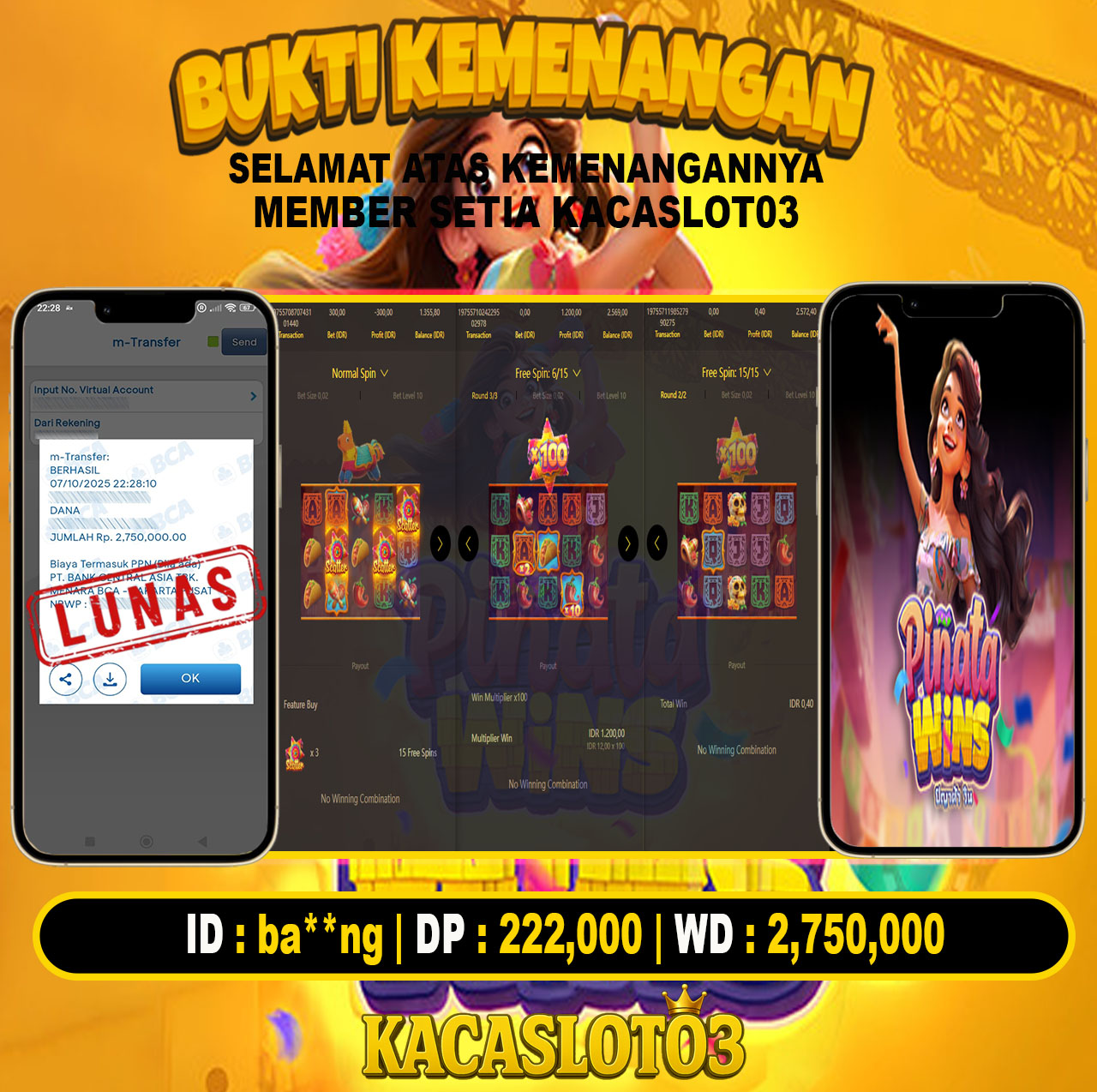 Selamat Kepada ID : ba**ng Atas Withdraw Rp. 2,750,000 Juta Hari ini. Ditunggu Withdraw Selanjutnya dan ajak juga teman temannya bergabung di Kacaslot03