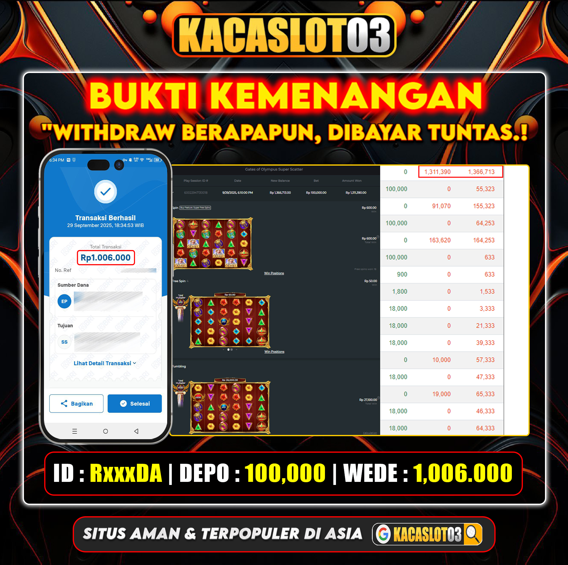 Selamat Kepada ID : St****03  Atas Withdraw Rp. 4,000,000  Juta Hari ini. Ditunggu Withdraw Selanjutnya dan ajak juga teman temannya bergabung di Kacaslot03