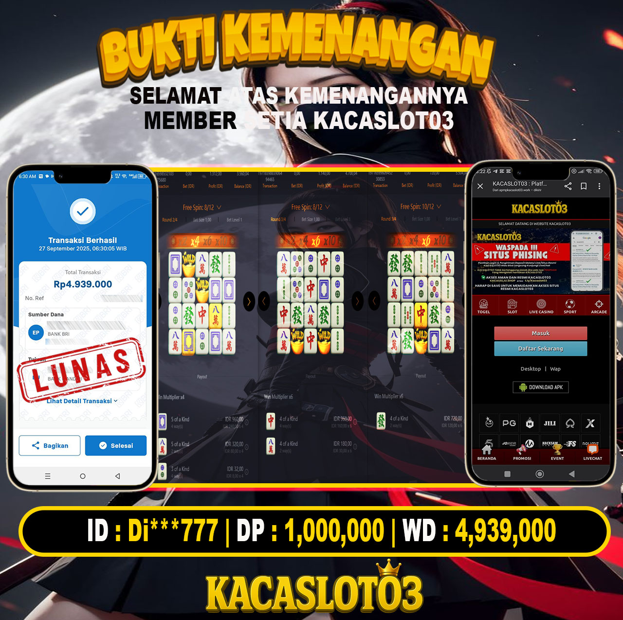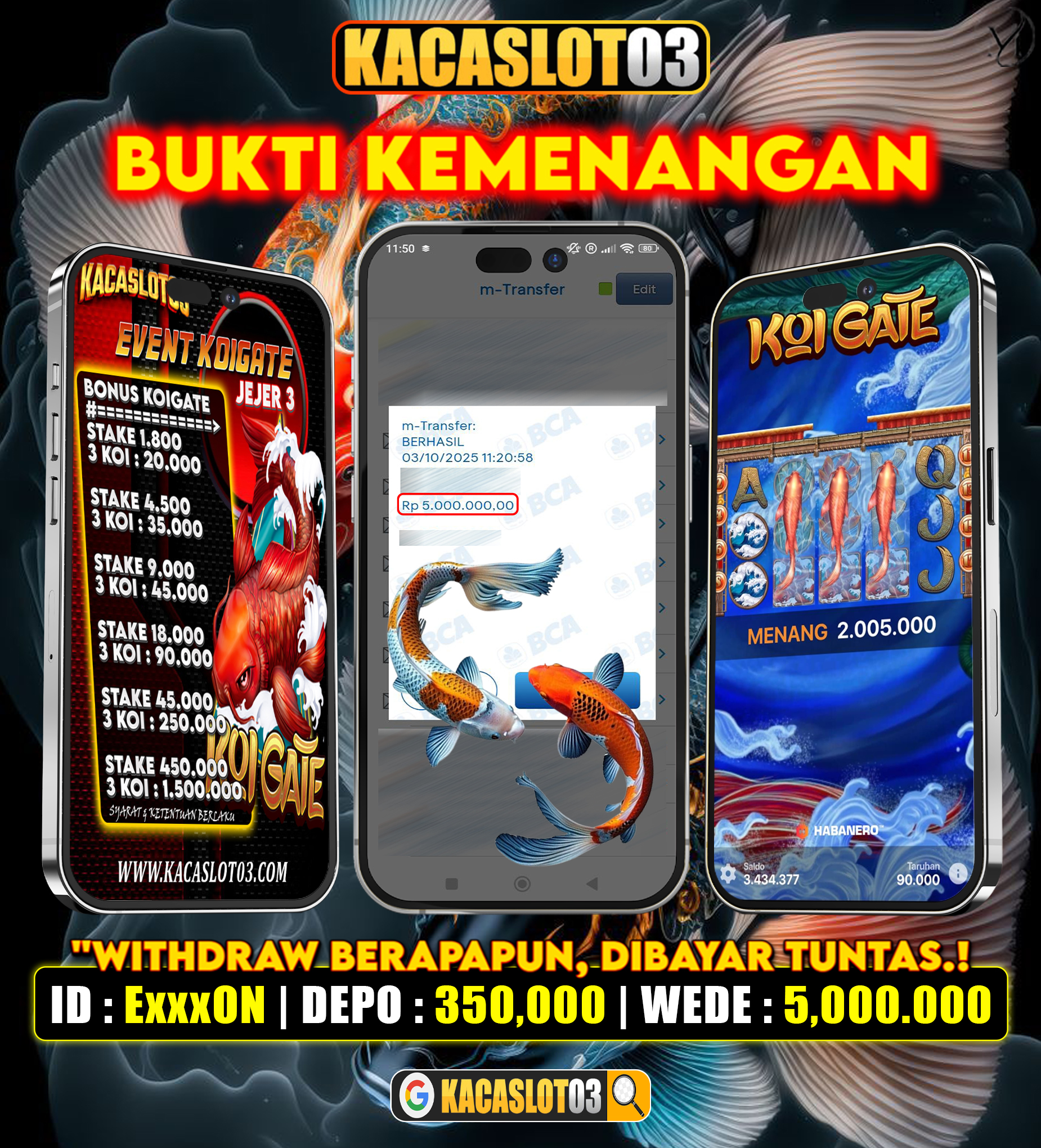Selamat Kepada ID : Be*****un Atas Withdraw Rp. 900,000 + 1,001.000 Juta Hari ini. Ditunggu Withdraw Selanjutnya dan ajak juga teman temannya bergabung di Kacaslot03.