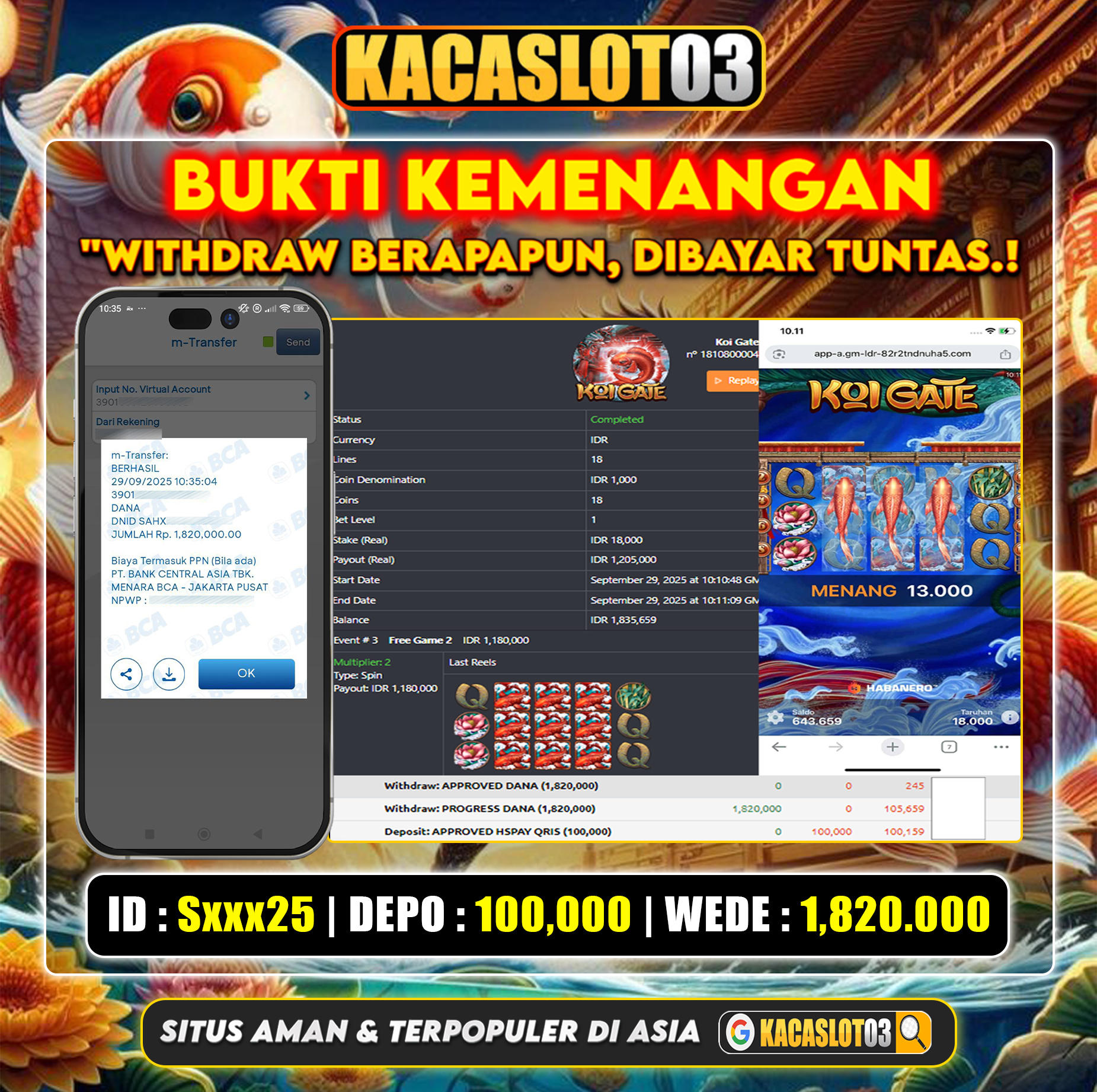 Selamat Kepada ID : ho**koi Atas Withdraw Rp. 5,600,000 Juta Hari ini. Ditunggu Withdraw Selanjutnya dan ajak juga teman temannya bergabung di Kacaslot03