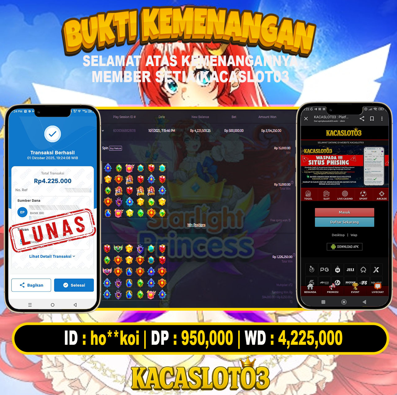 Selamat Kepada ID : ho**koi Atas Withdraw Rp. 4,225,000 Juta Hari ini. Ditunggu Withdraw Selanjutnya dan ajak juga teman temannya bergabung di Kacaslot03