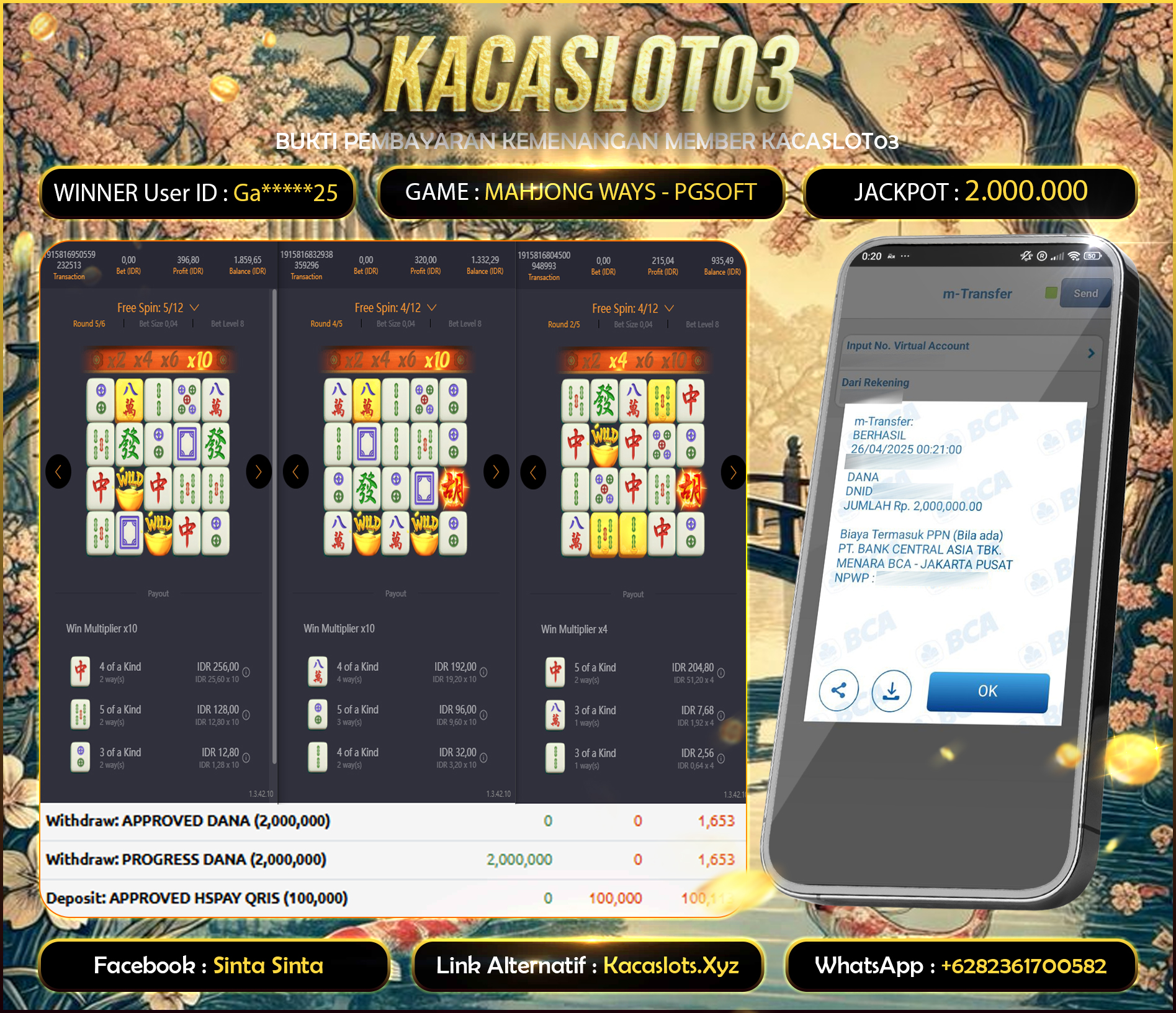 KACASLOT03 Bukti Kemenangan MAHJONG WAYS 2 – PG SOFT